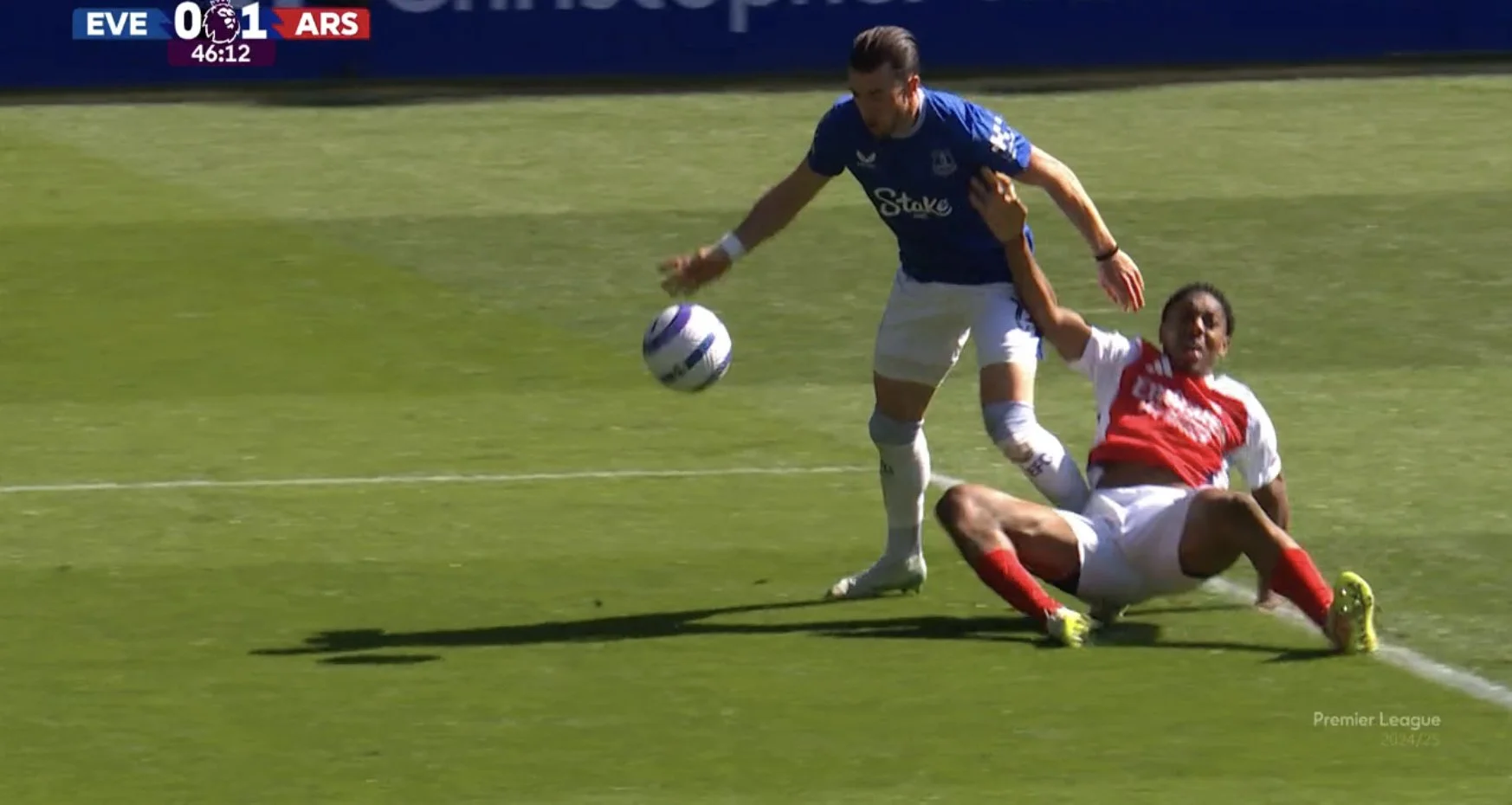 На 11-й хвилині Пікфорд не дотягнувся до подачі Райса з кутового. Деклан же крутив прямо у дальню дев'ятку, але Брентвейт опинився на лінії воріт і вибив м'яч головою. Ще через п'ять хвилин футболіст Евертона зіграв за Арсенал в обороні – Бету замикав навіс зі стандарту, пробивши головою під дальню стійку, однак сферу перед порожнім кутом заблокував О'Браєн!