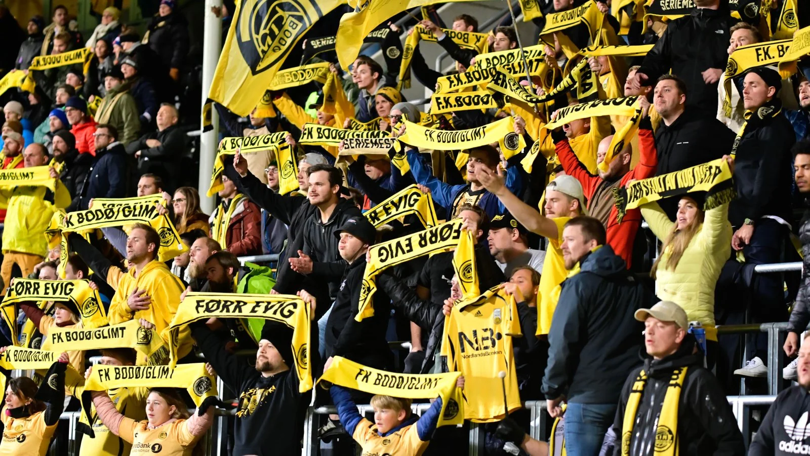 Вболівальники Буде-Глімта принесли із собою синьо-жовті прапори, якими активно розмахували на трибунах. Нагадаємо, на груповому етапі Ліги конференцій заполярники зустрічалися з луганською Зорею.