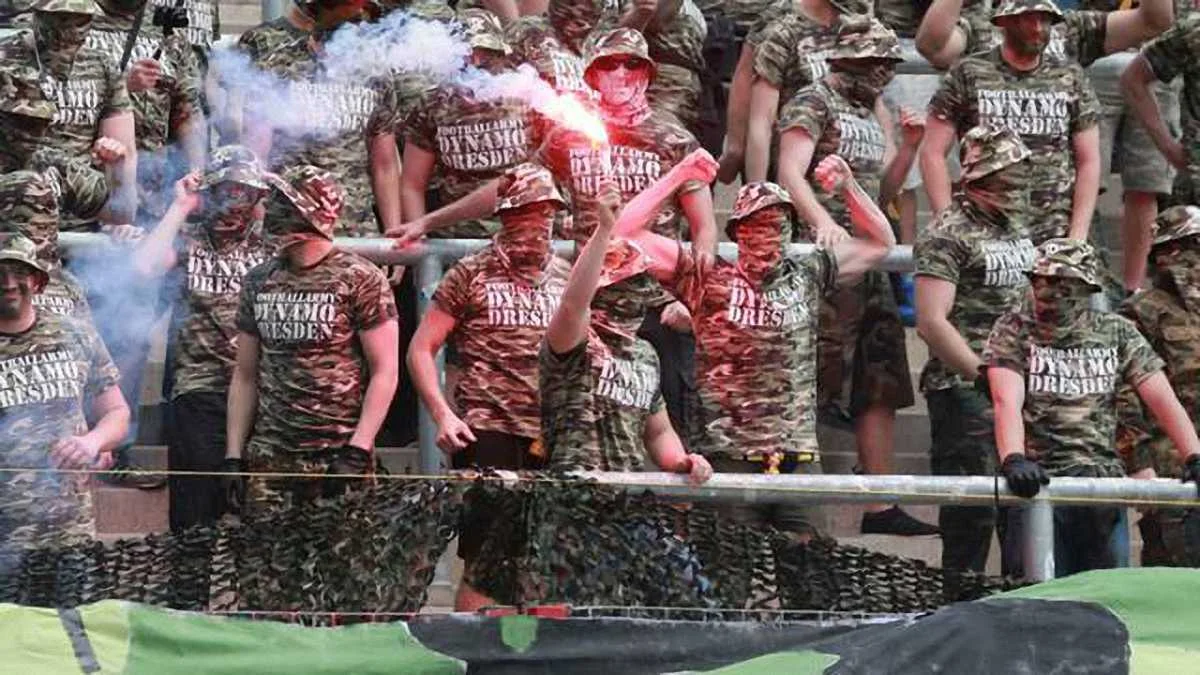 Натомість вболівальники Динамо приїхали на матч у повному складі, одягнувшись в стилі мілітарі. А на одному із їхніх банерів був надпис: "Війна Німецькому футбольному союзу".