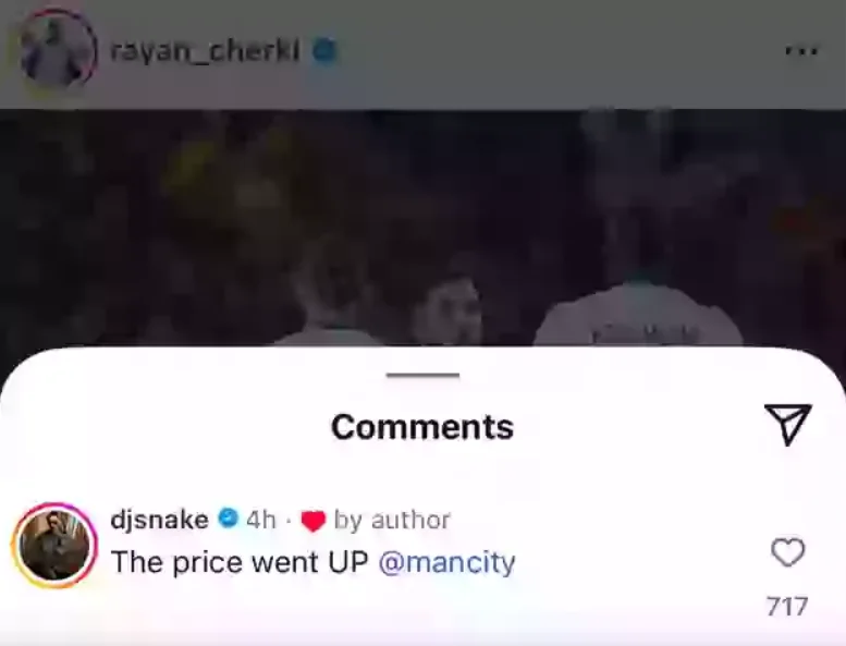 Після яскравого дебюту за збірну Франції в півфіналі Ліги націй проти Іспанії (поразка 4:5), гравець лайкнув коментар музичного продюсера DJ Snake в Instagram: "Ціна зросла, @ManCity".