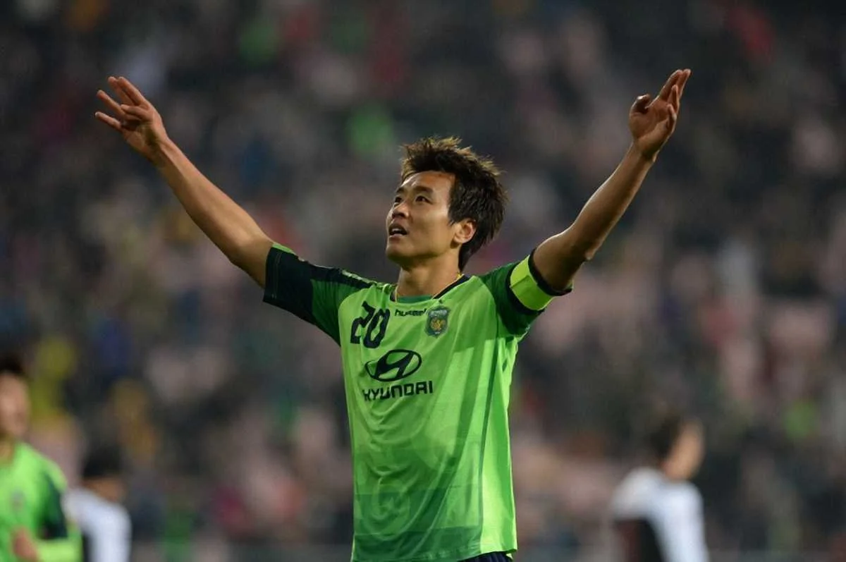 Нападник "Чонбук Моторс" Лі Донг-Гук фантастичним ударом через себе відправив м’яч у сітку воріт.