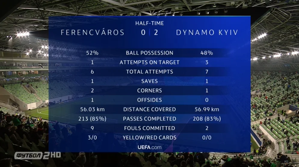 "Браво", Белуце! Дебютант Динамо вийшов замість Шапаренка на останні хвилини і двічі забув вийти в офсайд, коли вся команда синхронно ловила суперника. Болі розстрілював Бойка з кількох метрів. Шокуюча заміна Луческу. В останні хвилини Ференцварош упіймав кураж і міг забивати третій, але це вже було б занадто. Київ дарує команді Реброва перший бал в ЛЧ за 25 років. По суті, за власним бажанням – абсолютно виграшний був матч. У столиці України команди розіграють 3 місце та путівку в Лігу Європи, і це буде не менш драматично.