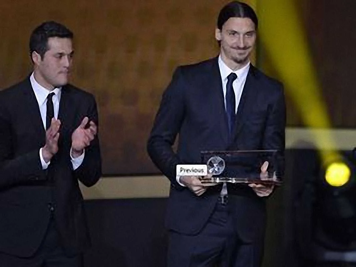 На церемонії вручення "Золотого м'яча" у Цюріху форвард ПСЖ та збірної Швеції Златан Ібрагімовіч отримав нагороду за найкращий гол минулого року.