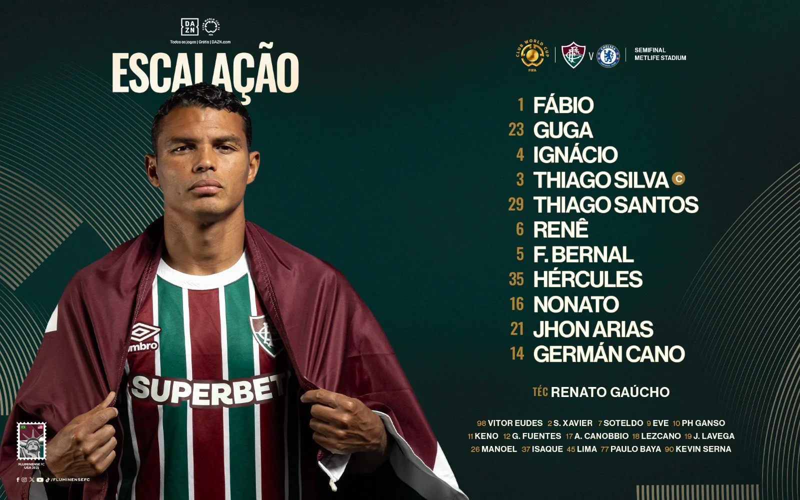 Флуміненсе: Фабіо, Ігнасіо, Тьягу Сілва, Тьяго Сантос, Гуга, Берналь, Геркулес, Нонато, Рене, Аріас, Кано.