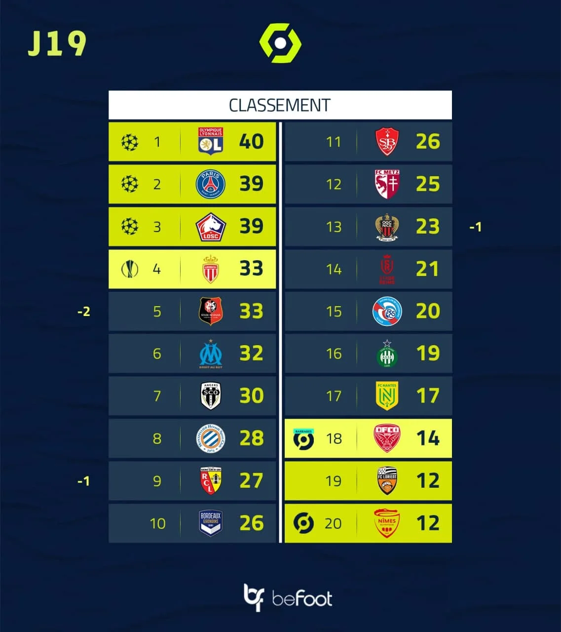 У Лізі 1 відіграли половину дистанції. Ліон врятував нічию з Ренном завдяки Депаю, продовжив безпрограшну серію до 16 матчів і лідирує. ПСЖ після нічиєї з Сент-Етьєном здобув першу перемогу з Маурісіо Почеттіно, розгромивши Брест. Парижани ділять друге місце з Ліллем, який знову виграв внаслідок гола Їлмаза. Далі Монако, Ренн... і аж потім Марсель. Не так давно провансальці йшли в топі, але одна перемога в 5 турах відкинула їх подалі. Щоправда, у Віллаш-Боаша ще два матчі в запасі. А роль головного блазня чемпіонату португалець невідворотно втрачає – Раймон Доменек вже почав смалити напалмом.
