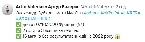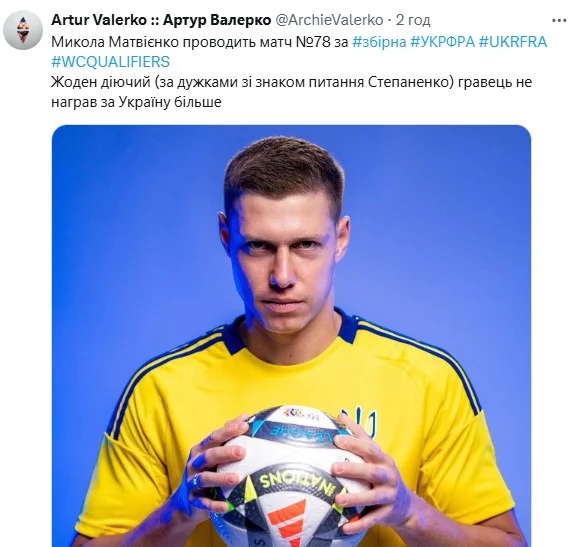 Цікаві статистичні фішки від архіваріуса Артура Валерка. Виявляється, Микола Матвієнко – головний гвардієць теперішньої збірної. А Забарний та Зубков синхронно дебютували за "синьо-жовтих" у жахливому жовтневому спарингу 2020-го проти... Франції.