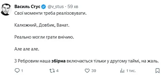 Сергій Тищенко, блогер Футбол 24, констатує: наша команда мала вікно можливостей, тривалістю в п'ять хвилин.