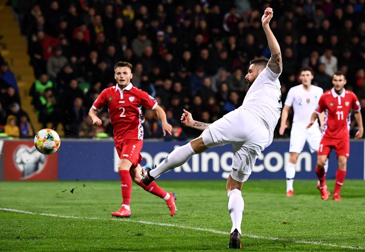 Збірна Франції в рамках 1 туру відбіркового циклу Євро-2020 завітала в гості до Молдови. Антуан Грізманн та Поль Погба розіграли ефектну комбінацію, яка поклала початок розгрому господарів, а Олів'є Жиру зрівнявся за кількістю голів з Давідом Трезеге.