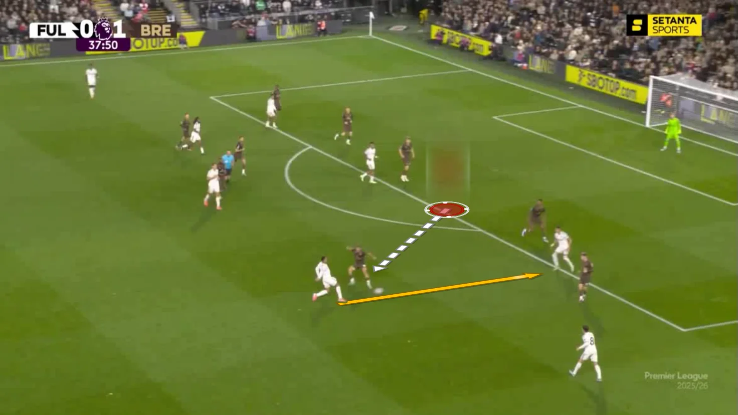 Фулхем володів м'ячем 64% часу, вів за ударами з рахунком 13:3, а за дотиками у штрафному "котеджери" мали 25:5 на свою користь. Крім того, підопічні Марку Да Сіли виграли 26 єдиноборств із 42-х. На цьому тлі гол Дамсгора виявився несподіванкою – Мікель вивів Брентфорд уперед на 20-й хвилині, скориставшись обрізкою захисника на лінії карного майданчика. Данець із цієї ж зони зарядив у правий нижній. 0:1!