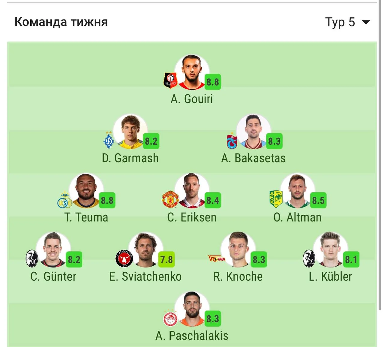 Статистичний портал Sofascore підготував символічну команду, яка складена з найкращих гравців 5-го туру групового етапу Ліги Європи.