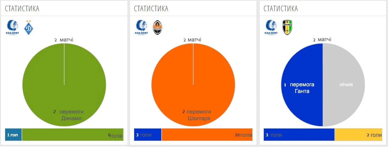 Останніми роками Гент – частий гість в Україні. З представниками УПЛ бельгійці зіграли 6 матчів, у яких здобули одну перемогу, одну зустріч звели до нічиєї і зазнали чотирьох поразок. Проте, як ми вже згадували вище, вперше "буйволи" завітали в Київ. Влітку 2010-го вони протистояли Динамо у третьому раунді кваліфікації ЛЧ. Вдома столична команда здобула легку перемогу завдяки голам Ярмоленка, Шевченка (нинішній наставник збірної тоді записав у свій актив ще й асист) та Зозулі. У рідних стінах Гент пропустив все ті ж 3 м'ячі, але спромігся на гол престижу у виконанні Елімана Кулібалі. За киян забивали Гармаш, Мілевський та Гусєв, який зараз асистує Мірчі Луческу. Брав участь у тому протистоянні ще один помічних румунського фахівця – Огнен Вукоєвіч провів обидві гри без замін.