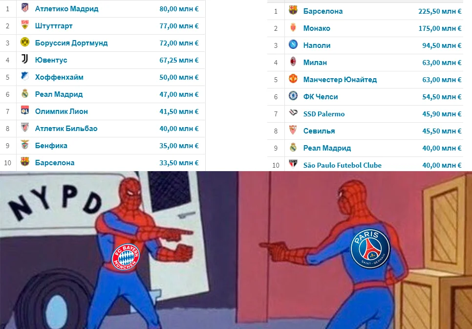 Втім, Баварія після тріумфу в 2013-му також не грала у фіналах, інколи вилітаючи з ганьбою – і це при витратах у майже € 600 млн без урахування оренд суперзірок з Іспанії та топових вільних агентів з Німеччини. Ну, і хто тут клоун та "мішок"?