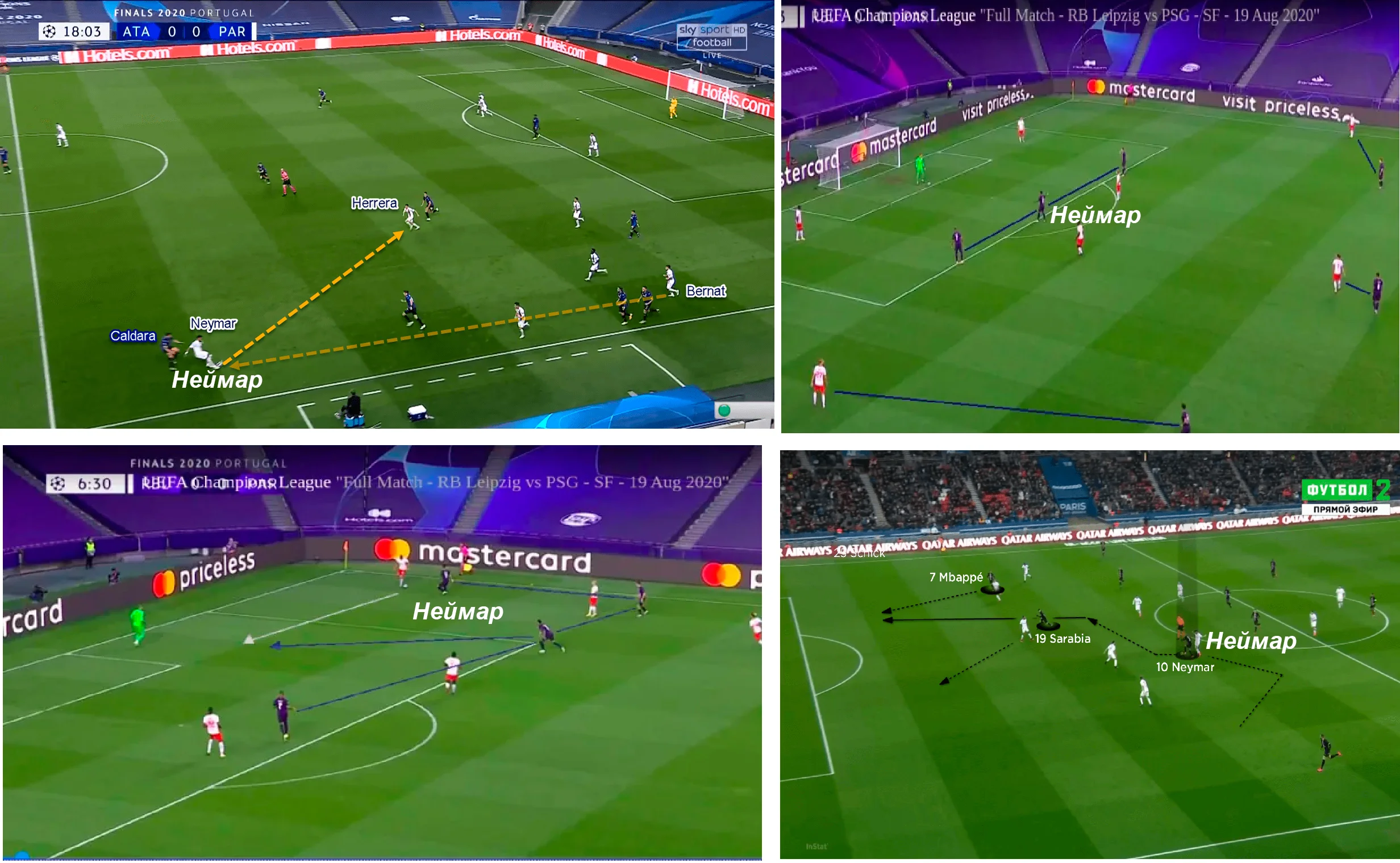 У матчі проти Аталанти тренерський штаб ПСЖ майже не мав кадрів для урізноманітнення гри, тож довелося її спростити – хавбеки витягували півзахист бергамасків на свою половину й створювали для Нея ізоляції, а Кейлор виносив м'яч у звільнену зону. Неймар підхоплював сферу та починав обігрувати аж по три захисники, самотужки знищивши систему персонального пресингу Аталанти – до фінального свистка в його активі було 16 успішних обіграшів з 23 спроб, що стало повторенням історичного рекорду Ліги чемпіонів.
