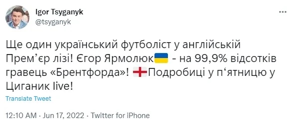 Про майбутній трансфер Ярмолюка повідомив журналіст Ігор Циганик у Twitter, пообіцявши розкрити подробиці пізніше. Втім, за його словами, угода завершена на 99,9%.