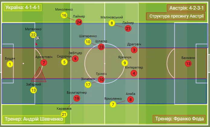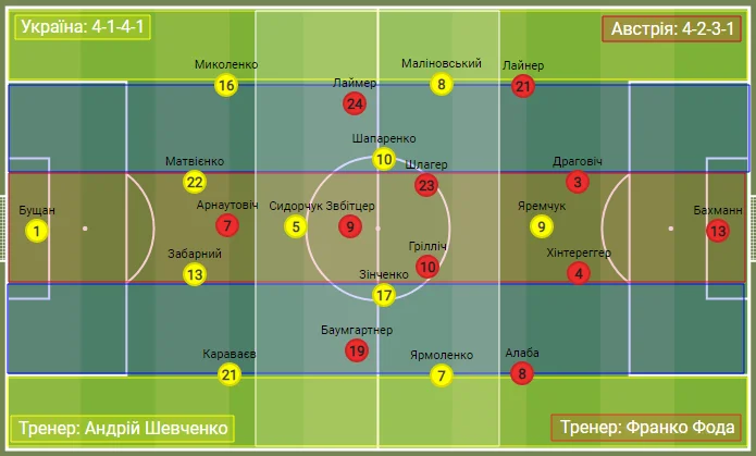 Якщо характеризувати головні передматчеві тактичні розклади, то було чітко зрозуміло – або Австрія розчавить своїм тиском нашу структуру позиційної гри в атаці та бомбардуватиме оборону кросами і закиданнями, або ми будемо розбивати їхній пресинг, відрізати групи гравців від лінії м'яча, користуватися високою лінією оборони суперника. На жаль, спрацював перший варіант розвитку подій.
