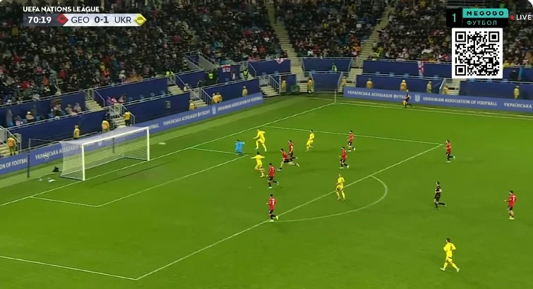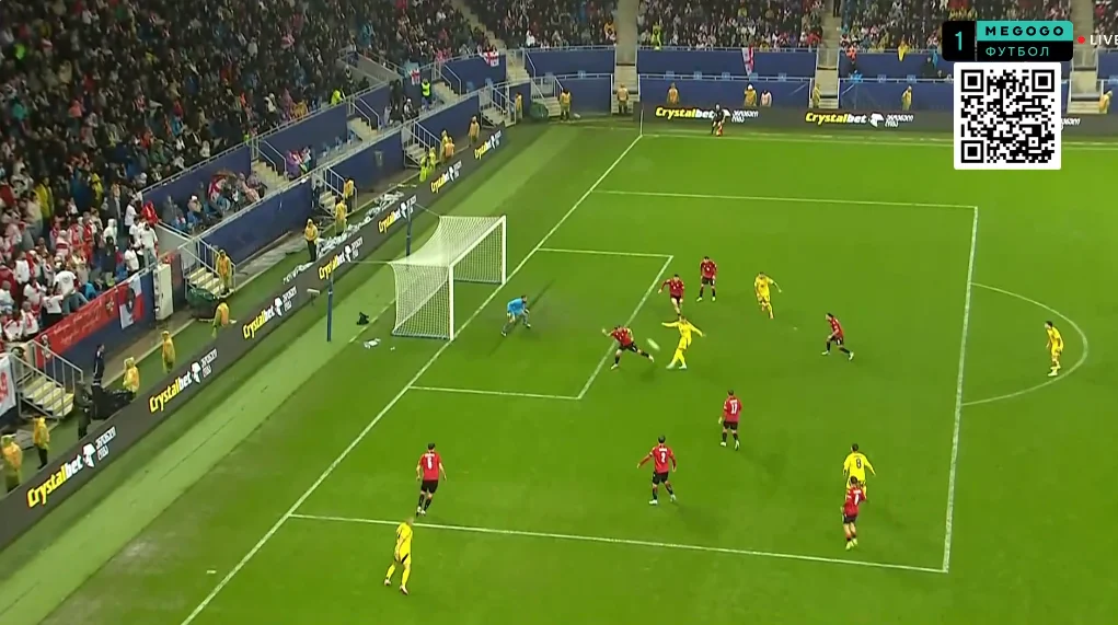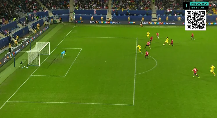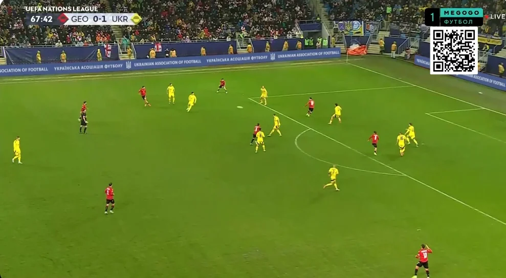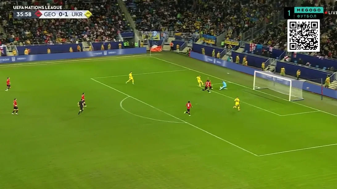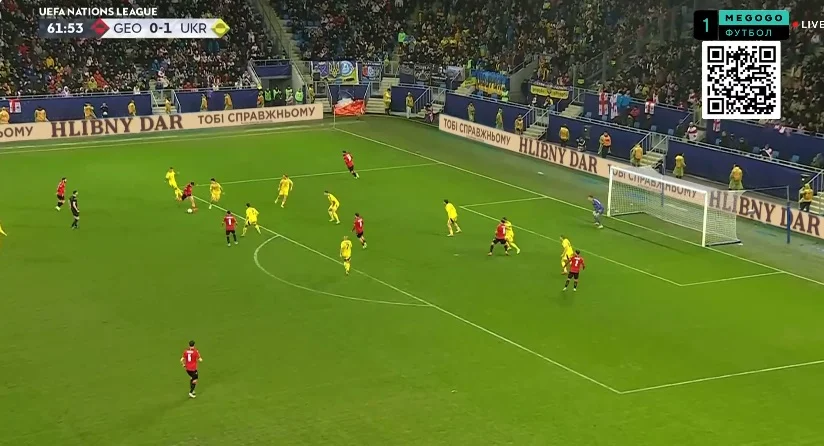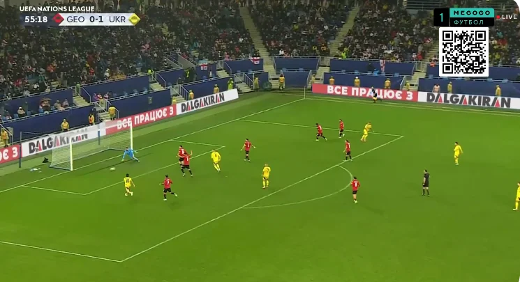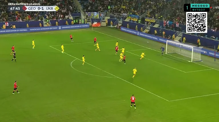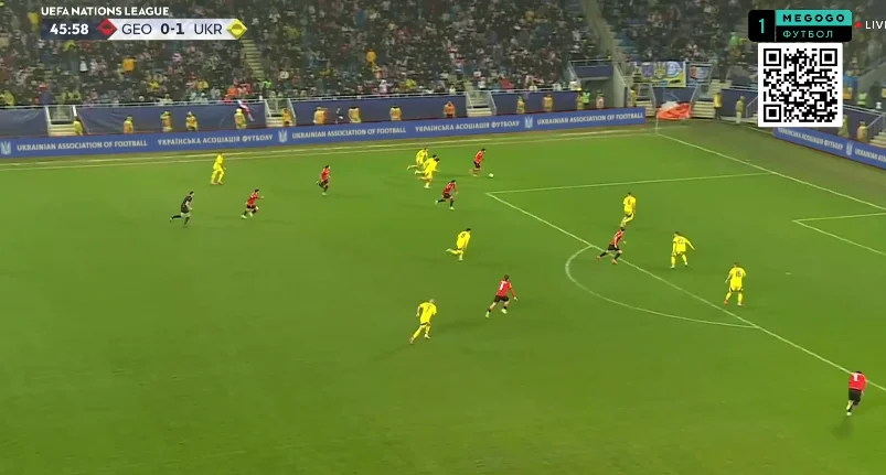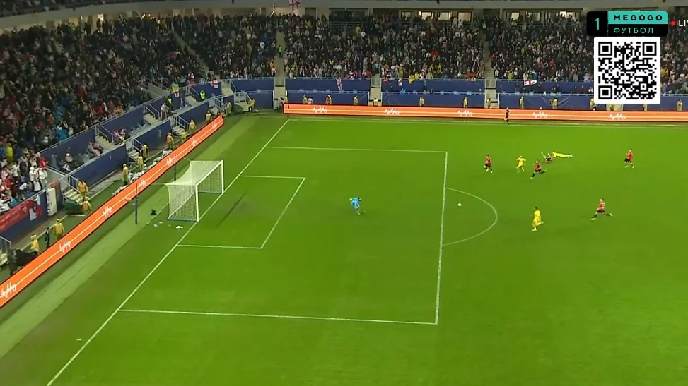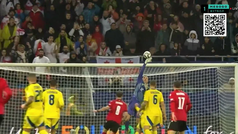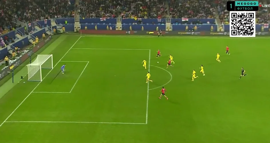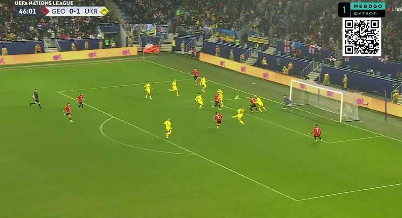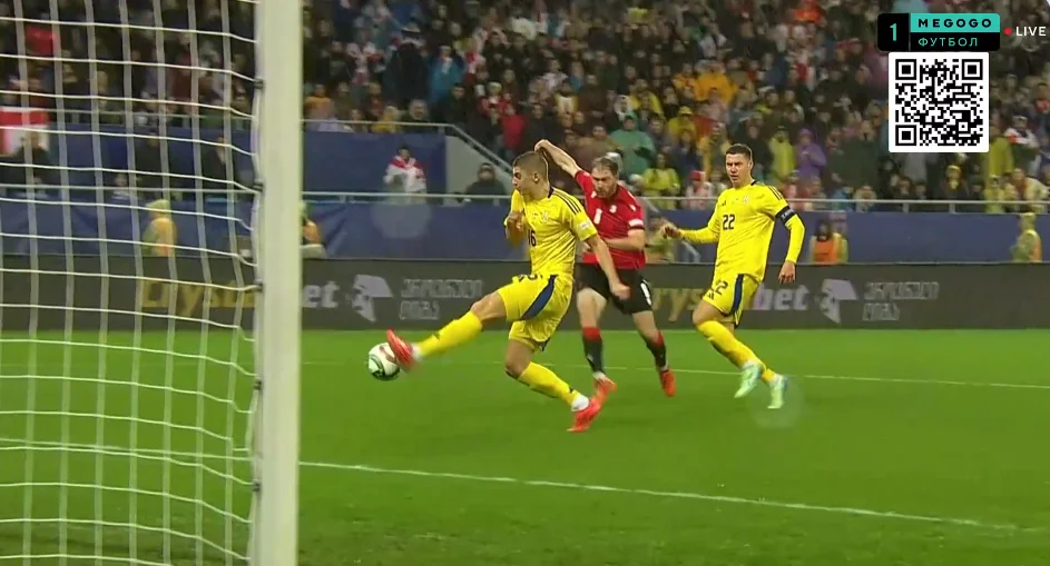 Втім, вже на 7-й хвилині грузини зазнали фіаско. Господарі не просто провалили свій кутовий, а й ковтнули стрімку контратаку правим флангом. Мудрик обігрався у стіночку з Судаковим та чкурнув вперед метрів на 70, заодно розхитавши захисника грузин.