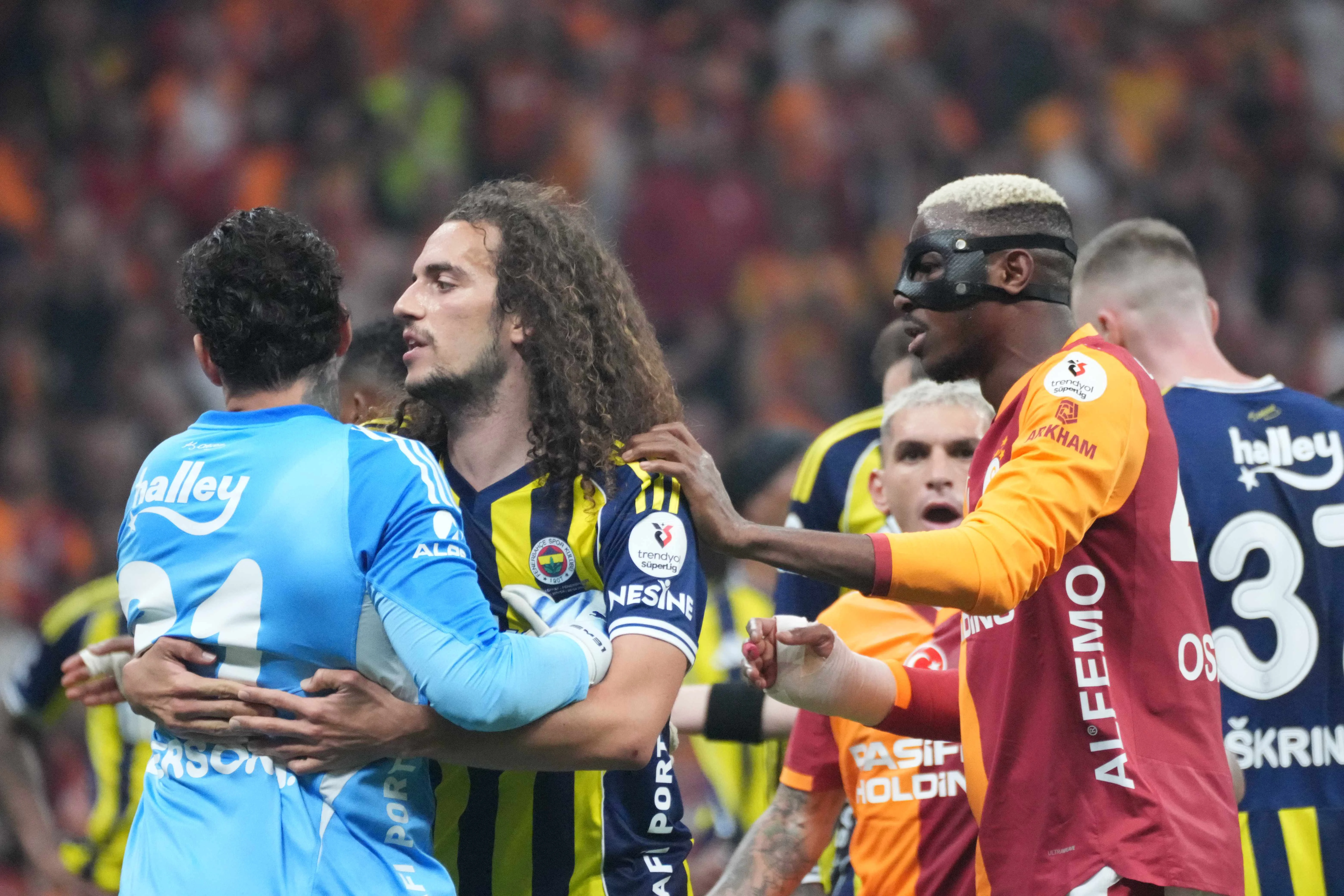 У першому таймі відзначився голом лідер Галатасарая Віктор Осімхен на 40-й хвилині. Вже в другій сорокап'ятихвилинці пристрасті почали кипіти. На 62-й хвилині арбітр призначив пенальті у ворота Фенербахче, але колишня зірка Манчестер Сіті Едерсон відмовлявся швидко відійти на лінію воріт та сперечався з суддею, тому отримав другу жовту картку і вилучення. Бразильця довелося відтягувати від арбітра, якому воротар щось кричав. Навіть партнери по Фенербахче буквально виштовхували Едерсона, щоб він не отримав тривалішої дискваліфікації.