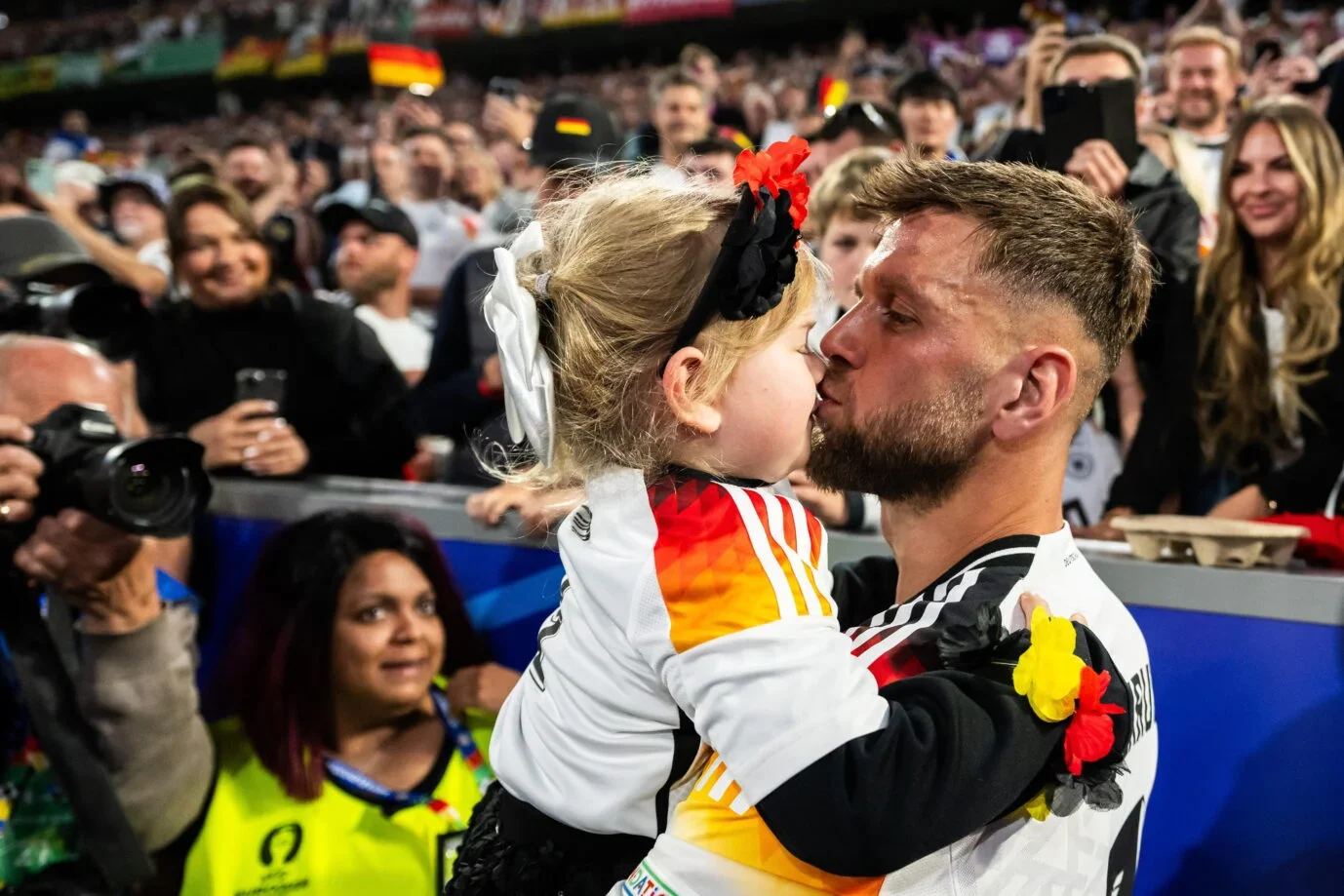 Відтоді у неї з батьком зародилася мила традиція – разом святкувати перемоги на полі. Домашній Євро-2024 не став винятком. Тато двічі забив на груповому етапі, а потім розділив радість із донькою.