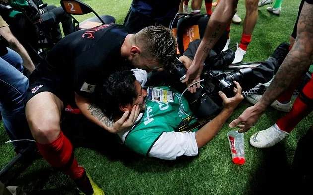 Постраждалим виявився мексиканський фотограф AFP Юрі Кортес. Він у той момент намагався увіковічнити історичну радість хорватів, однак потрапив під роздачу.
