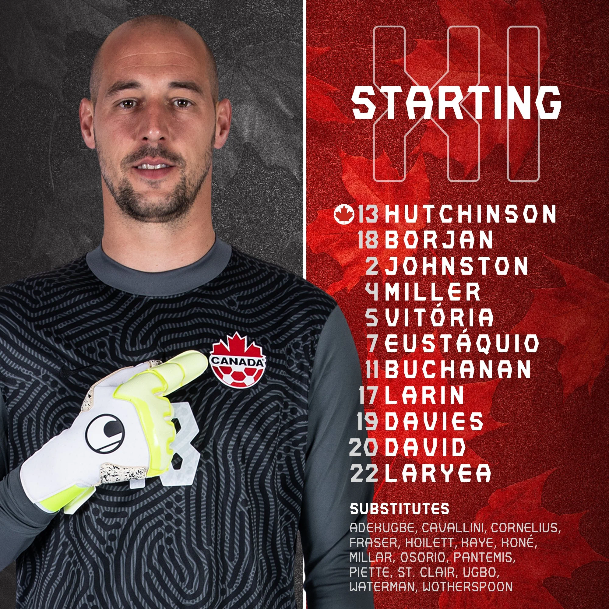 Канада: Борян – Джонстон, Віторія, Міллер – Ларія, Хатчінсон, Еустакіо, Девіс – Девід, Ларін, Б'юкенен.