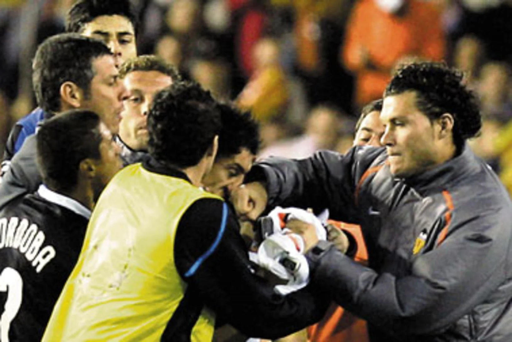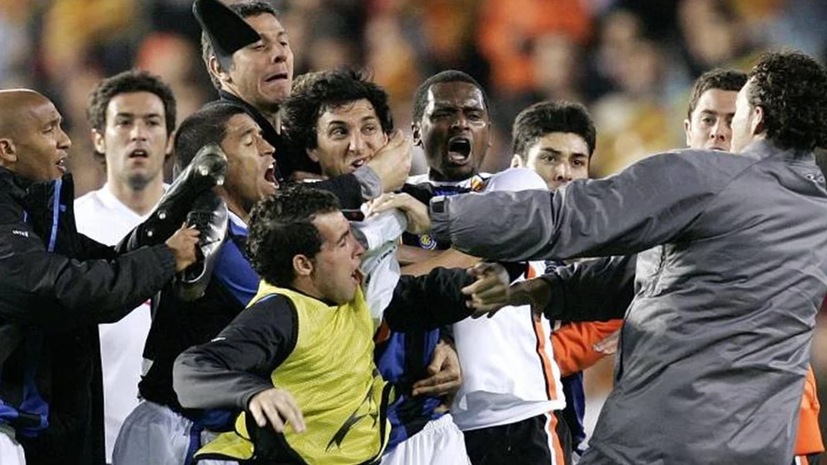 Деякі гравці Інтера попрямували до підтрибунного приміщення, валенсійці кинулися святкувати. Неспокійно було тільки поруч із центральним колом, де зчепилися Марчена і Бурдіссо. Усі подальші події можна описати лише одним словом – хаос. До епіцентру суперечки кинулися представники обидвох команд і не лише футболісти. Та навіть ці пристрасті можна було відносно безболісно погасити. Якби не одне "але".