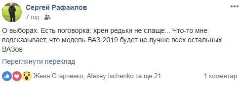 "Про вибори: є приказка "хрін за редьку не солодший". Щось мені підказує, що модель ВАЗ 2019 буде не кращою за всі інші ВАЗи", – написав Рафаїлов.