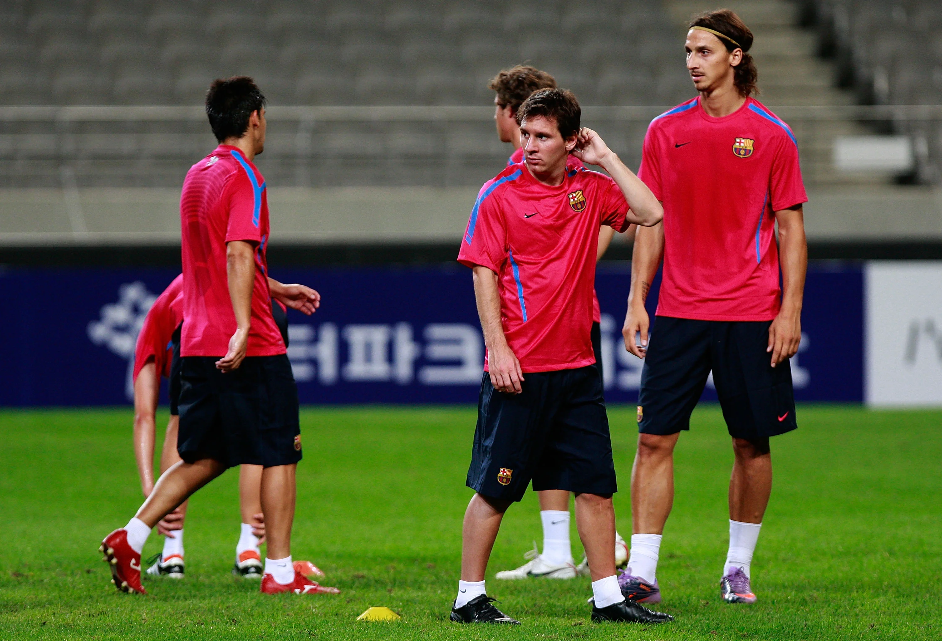 Ібрагімовіч та Мессі на тренуванні "Барселони" / getty images