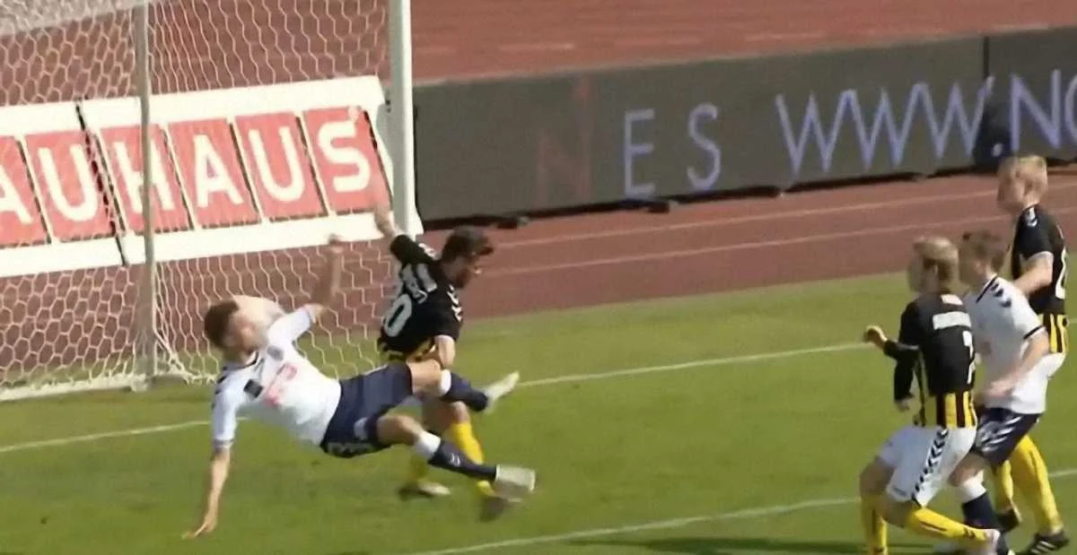 У матчі другого дивізіону півзахисник "Орхус" Кім Аабех неймовірним чином відправив м’яч у сітку воріт "Брьонсхьой".