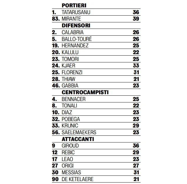 Відтак, єдиною зміною у заявці стало потрапляння у список Маліка Чау. Літній новачок Мілана пропустив груповий турнір, а на плей-офф замінить Сержіньйо Деста. Американець, права на якого належать Барселоні, так і не зумів стати важливим гравцем у схемах Стефано Піолі.