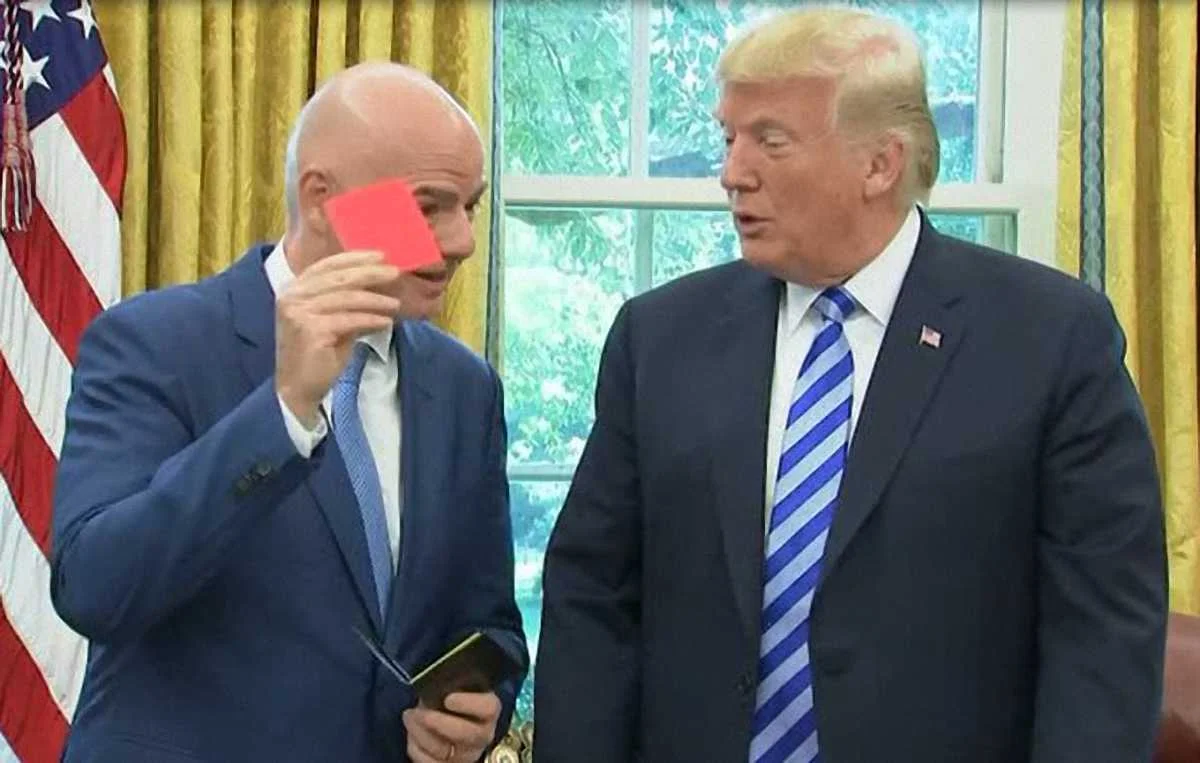 В кінці зустрічі в Білому домі президент ФІФА подарував Дональду Трампу футболку з його прізвищем і номером 26 на спині.