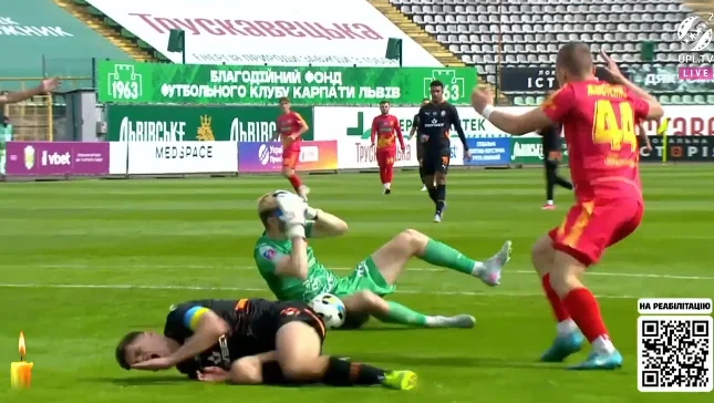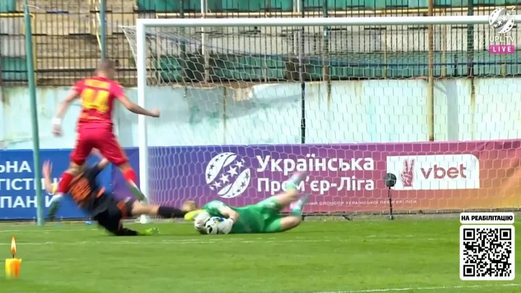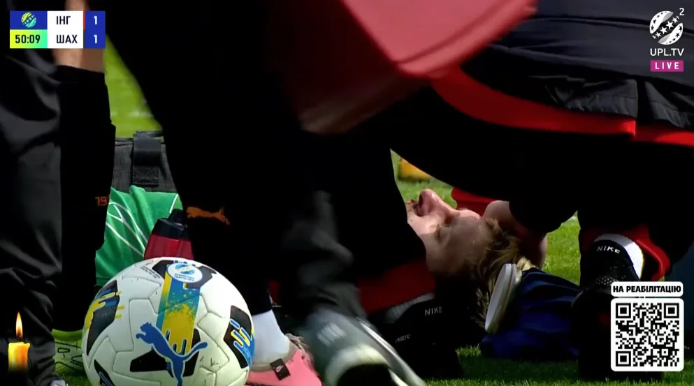Голкіперу надавали допомогу цілих шість хвилин, причому він з розбитим носом просився продовжити матч.