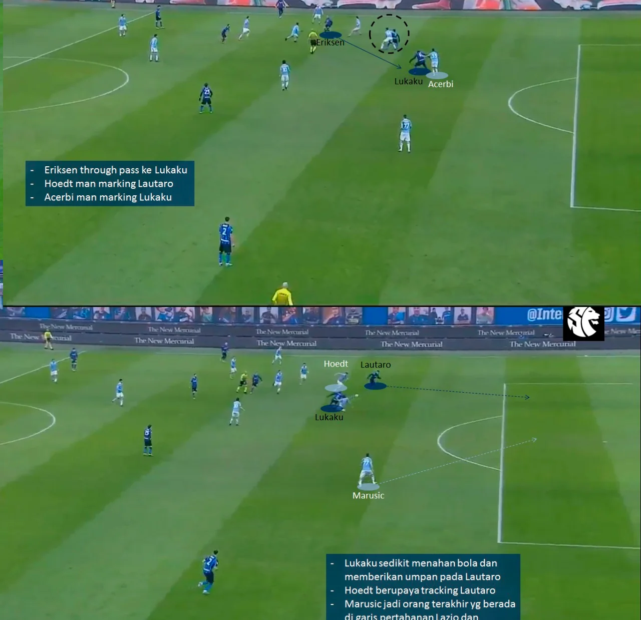 Закритість Інтера болісно вдарила по атаці Лаціо, але не можна сказати, що "нерадзуррі" поставили оборону Індзагі у глухий кут. У першому таймі "нерадзуррі" мали тільки удари з-за меж штрафного та одне вривання Лаутаро, в якому більше половини голу зробила помилка Худта – він пішов у занадто ризикований підкат, та ще й виконав його не тією ногою, зрізавши Мартінеса. Третій же гол хоч і випливав зі стратегії Інтера, але явно був випадковим.