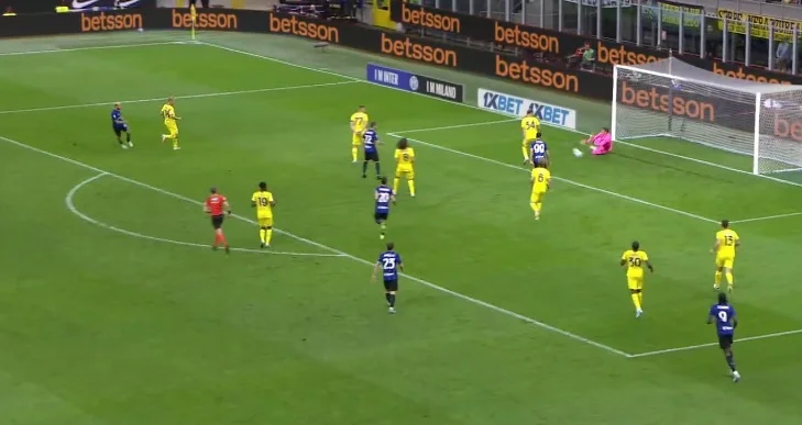 Але Інтер все одно грався з вогнем. Першим дзвіночком став момент на 70-й хвилині, коли Діа отримав фантастичний пас від Кастельяноса й вирвався на ударну позицію в штрафному. Подальший удар у лівий нижній кут пройшов поруч зі стійкою.