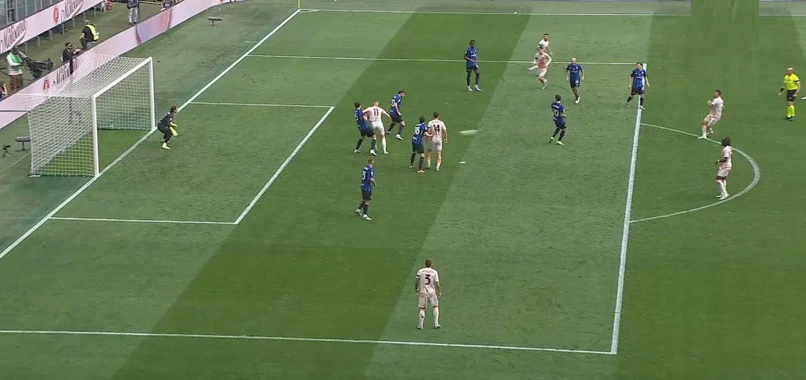 А ось і камбек Дюмфріса, який не грав з 16 вересня. Зовсім один нідерландський захисник на дальній стійці після того, як Суле дав подати з лівого краю. І знов прорив оборони ліворуч у Роми. Лаутаро розрізним пасом знайшов Бареллу, а в того геть не вийшов удар з гольової дистанції по суті. Довбик страждає на другому поверсі проти Ачербі у спробах зачепитися за винос голкіпера, але тонко скидає на хід Суле, який вирізає на Пізіллі, який марнує стовідсотковий шанс ударом вище. Ще одну сотку не реалізували римляни! Жорстко на межі фолу накривають Інтер, йде атака 2 проти 1, однак Довбик надто довго підлаштовувався під удар після накидання Анхеліньйо. Ачербі встиг поставити шлагбаум і дуже емоційно відреагував на свій успіх.