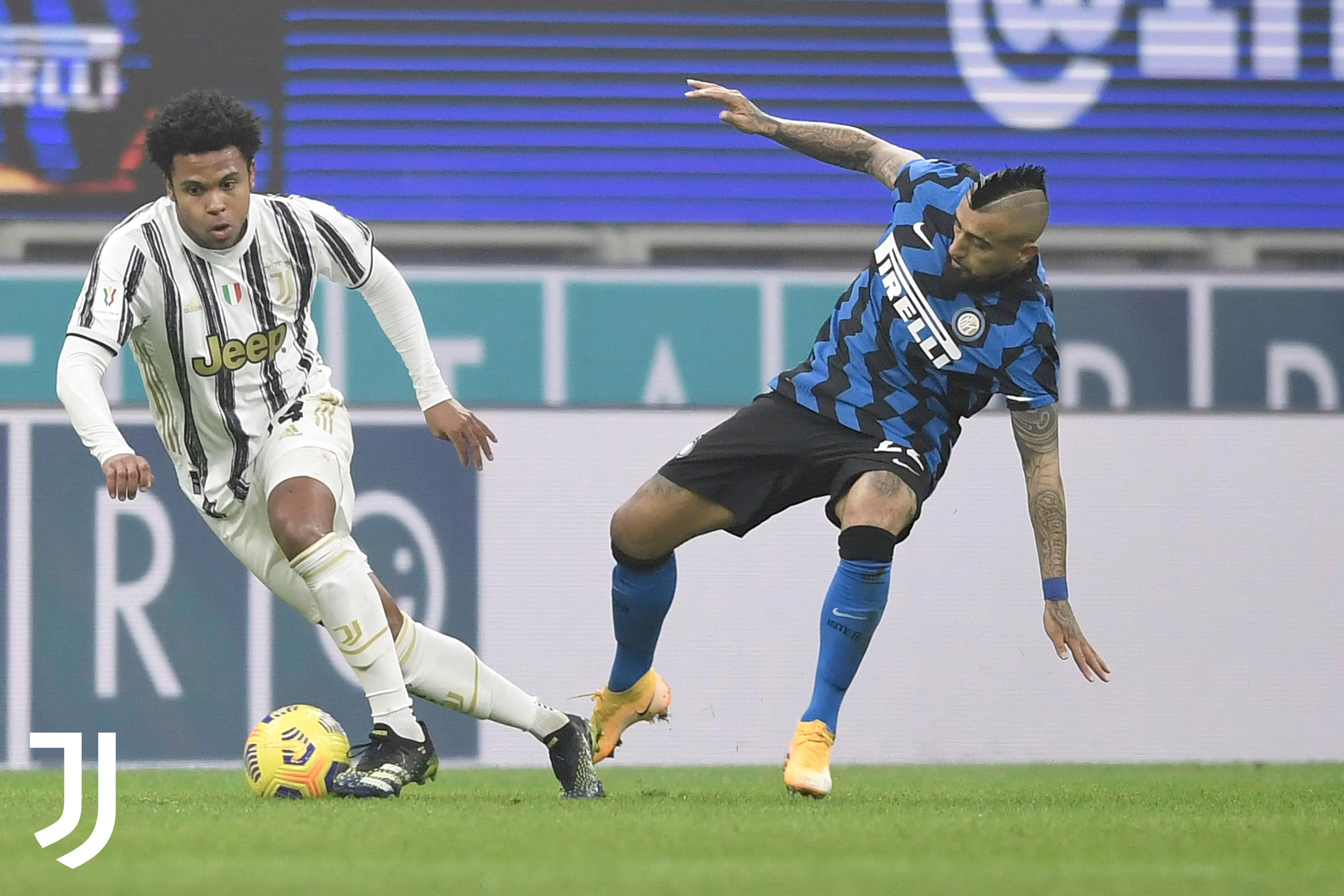 Порівняно з поєдинком у Серії А, Андреа Пірло мав набагато менше кадрових проблем. Він не міг розраховувати лишень на травмованого Дибалу, однак вдався до широкої ротації – Буффон став у ворота, в центрі оборони з'явився Деміраль, на правому фланзі вийшов Бернардескі, а в запасі залишились Мората та К'єза. Антоніо Конте, своєю чергою, виставив найсильніший склад – не вистачало тільки дискваліфікованих Лукаку та Хакімі.