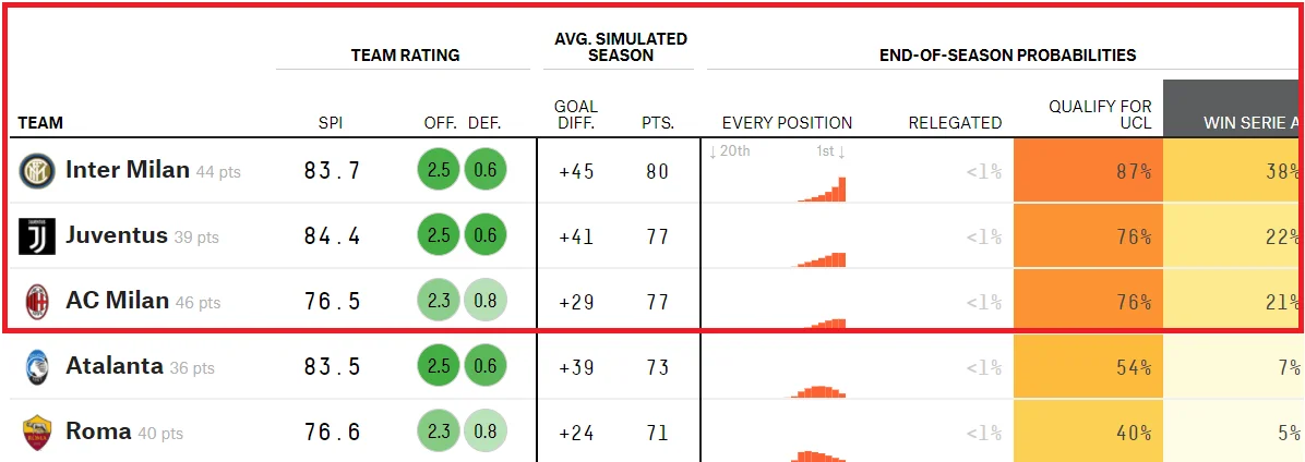 Команда Антоніо Конте у поточному сезоні є одним з найголовніших претендентів на чемпіонство. Портал FiveThirtyEight дає "нерадзуррі" майже вдвічі вищі шанси на Скудетто, ніж у Ювентуса й Мілана, а тактично Інтер виглядає найбільш забалансовано та стабільно серед усіх команд Серії А. Навіть на загальноєвропейському рівні міланці йдуть шикарно – за більшістю статистичних показників вони йдуть серед топ-15 європейських клубів. Цей топ відсотків на сімдесят перегукується з парами на 1/8 фіналу ЛЧ.