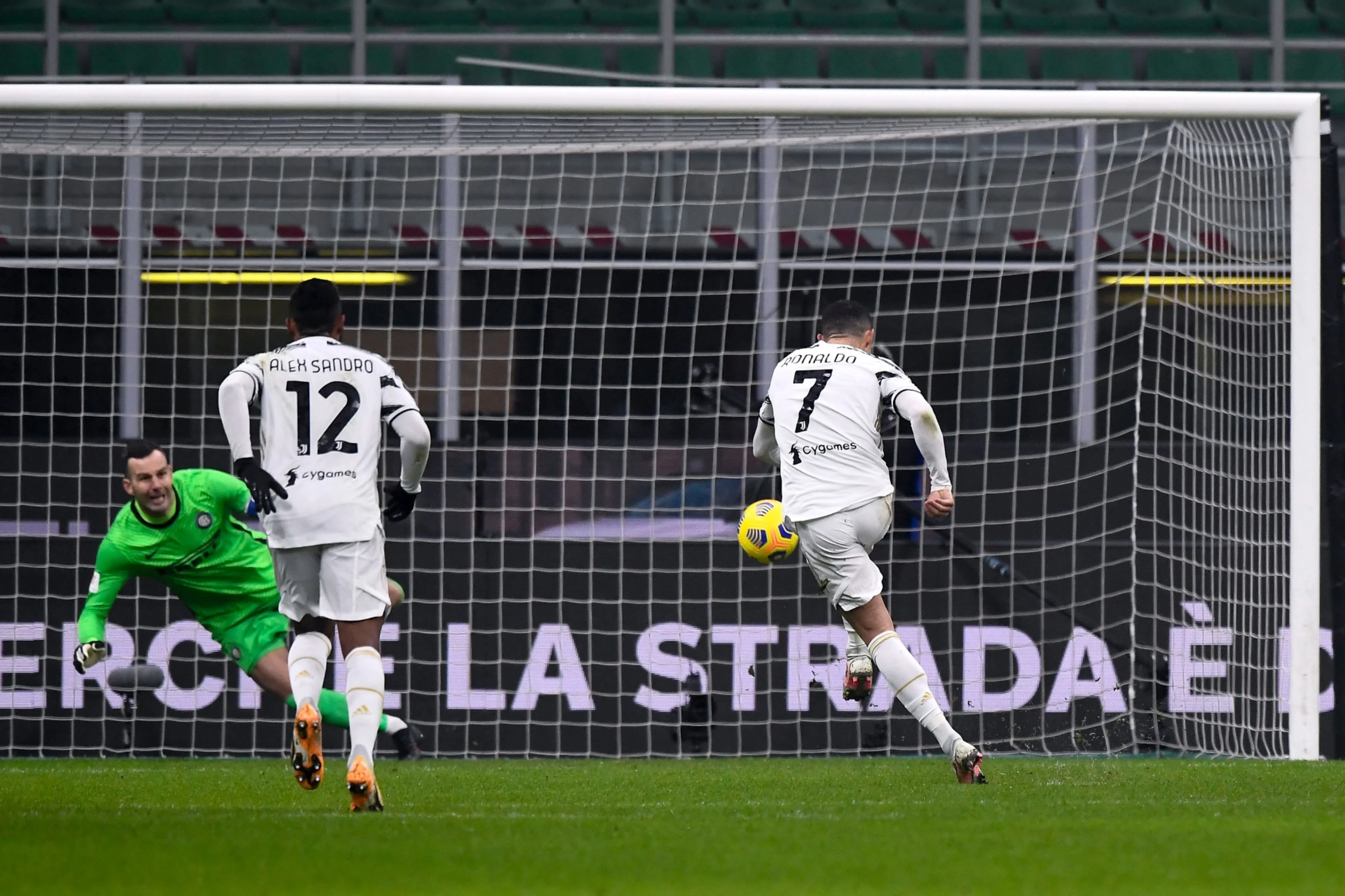 У півфіналі Кубка так не було – "б'янконері" дуже злагоджено тиснули на суперника при роботі без м'яча, відрізали від м'яча Брозовіча завдяки зміщенням Кулусевскі й постійно загрожували ривками по флангах. Власне, голи гостей прилетіли саме з цих дій, причому якісно пресингував навіть Роналду. Інтер у цих аспектах не був гіршим, тому перший тайм і виявився настільки рваним і сухим.