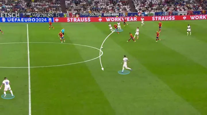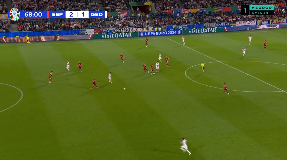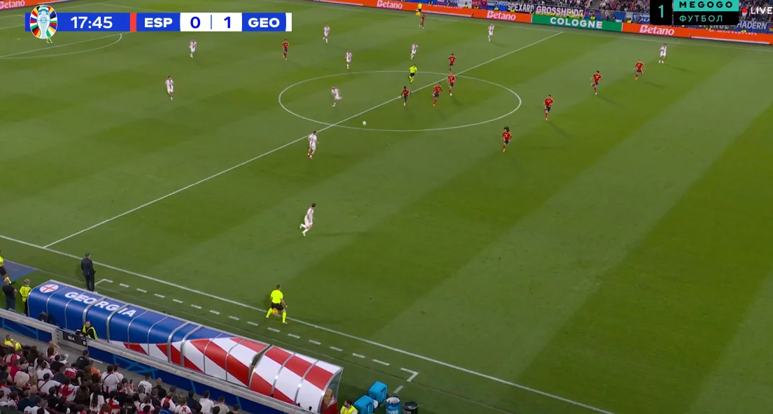 Також можуть виникати проблеми на флангах, адже Ямал і Вільямс (а почасти і фулбеки) не завжди встигають повертатись. Навіть грузини користувались цим нюансом, легко розкриваючи зони іспанців через витягування фулбеків в центр – і Німеччина також активно тиснула з цих зон.