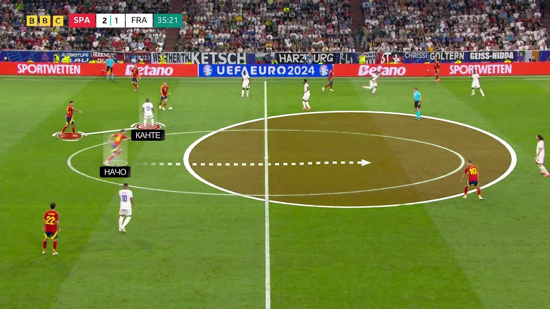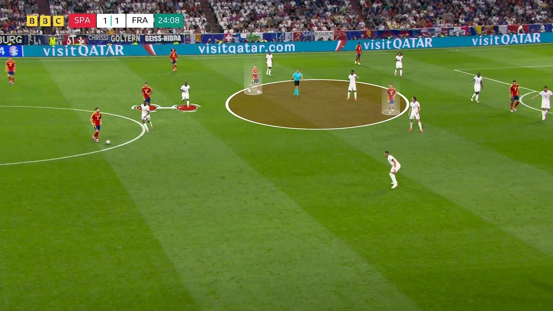 Показовими були матчі проти хорватів, німців та французів. "Картаті" забрали володіння й перевантажували центральні зони, але заради цього довелося відкривати тили – іспанці відповіли передачами за спини й фланговими контратаками. 3:0 до перерви.