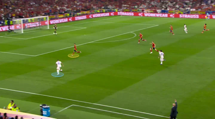 Бундестім грали максимально жорстко й вмикали високий пресинг. Їм вдалося зламати Педрі й нейтралізувати самого Родрі – але "Фурія" виходила з-під тиску через рейди центрбеків на дриблінгу.