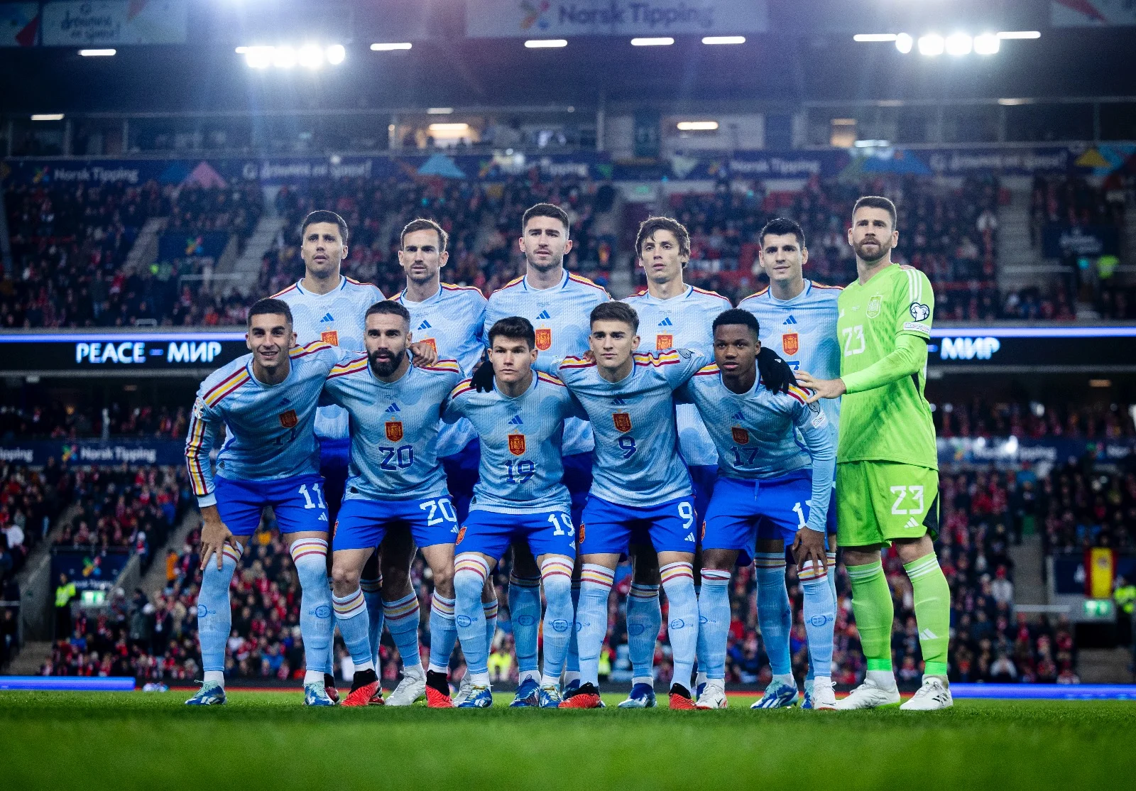 У весняній зустрічі з Іспанією не зміг взяти участь Холанд, однак тепер Ерлінг був готовий зіграти з перших хвилин. Він і зіграв, а от Сьорлот залишився у запасі через хворобу. Луїс де ла Фуенте, своєю чергою, провів невеличку ротацію – після перемоги над Шотландією на банку сіли Оярсабаль, Бальде й Меріно, а замість них вийшли Фаті, Фран Гарсія та Фабіан Руїс.