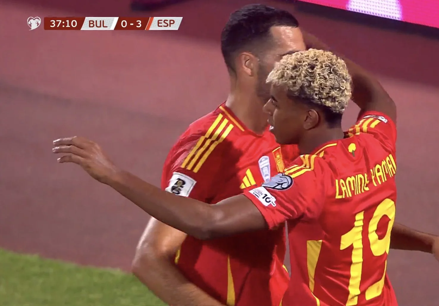 Перед перервою каталонський вундеркінд міг організувати й четвертий гол, накривши Дімітрова перед карним майданчиком. Оярсабаль зачепився за м'яч, вийшов 2-в-1 і покотив під удар у порожні, однак постріл Ламіна на лінії воріт зупинив захисник Ценов (а потім свиснули офсайд). Команди відправились відпочивати за рахунку 0:3 на користь піренейців.