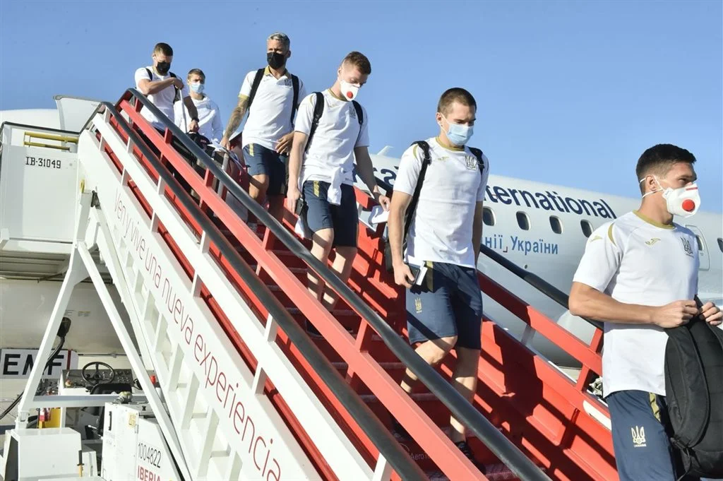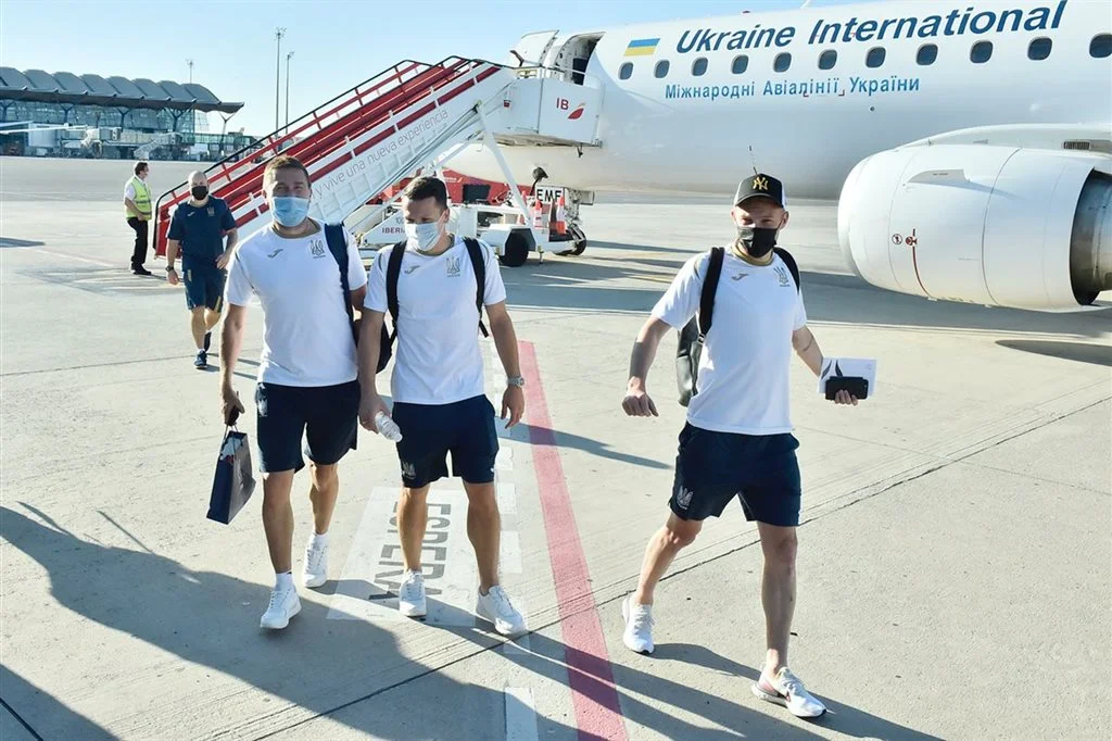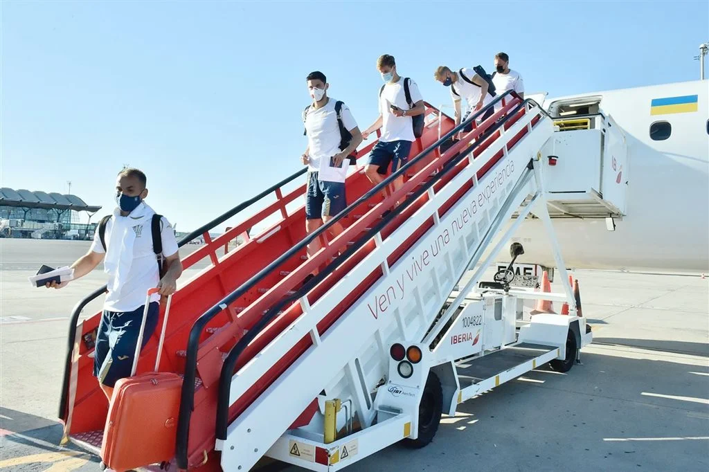 Національна збірна України успішно приземлилась у столиці Іспанії, повідомляє на своїй сторінці у соціальній мережі Telegram Українська асоціація футболу.