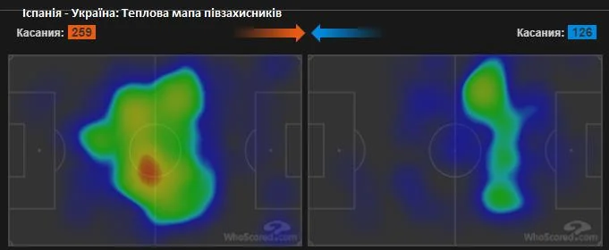 Теплова мапа матчу цілком відображає його характер. Господарі поля майже награли на тисячу дотиків. Це не найважливіший показник у футболі, але це просто аномальні цифри. У нас найактивнішою зоною був воротарський майданчик та центр штрафного, це дуже сумно.