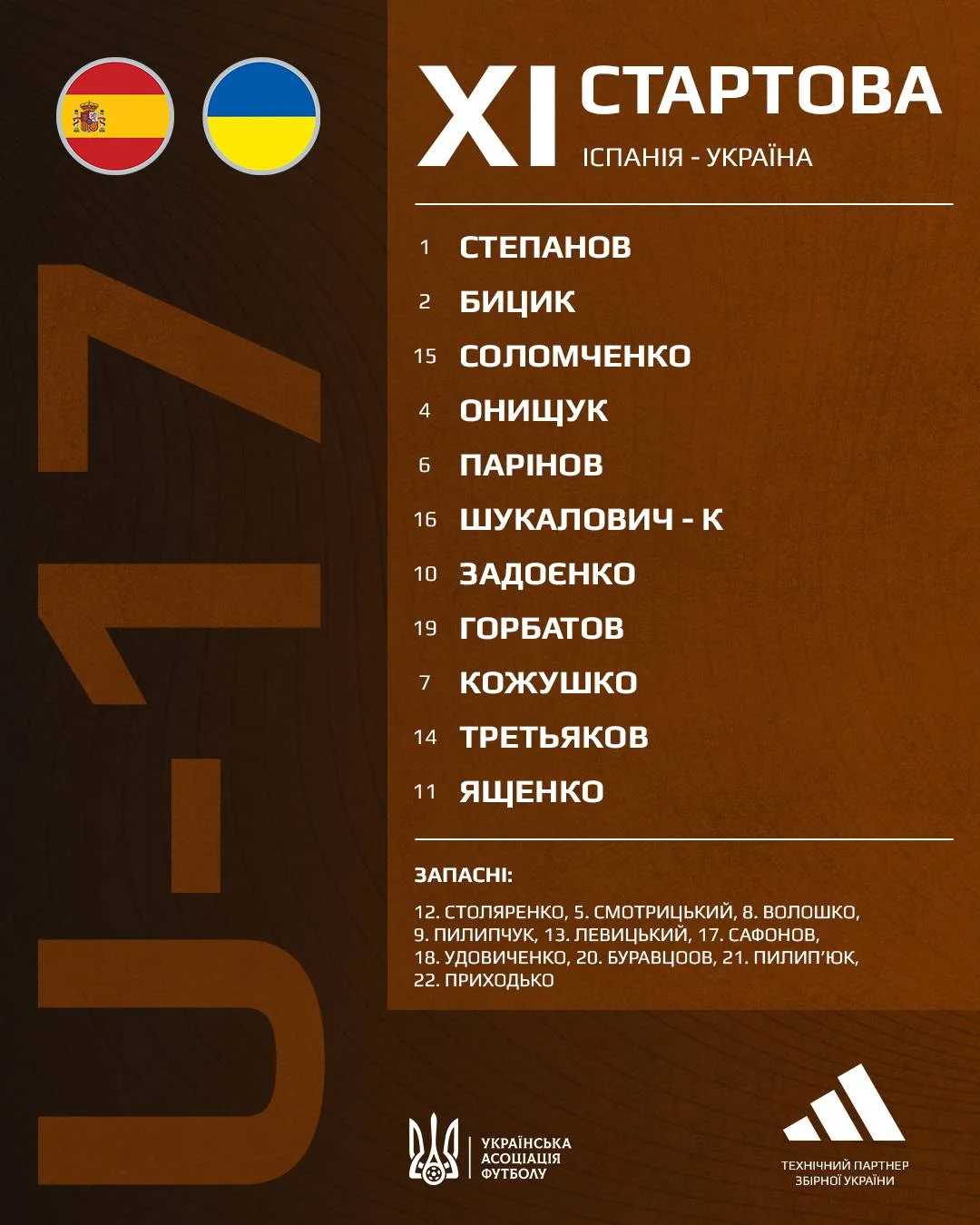 Іспанія – Україна: стартовий склад та безкоштовна онлайн-трансляція матчу збірних U-17