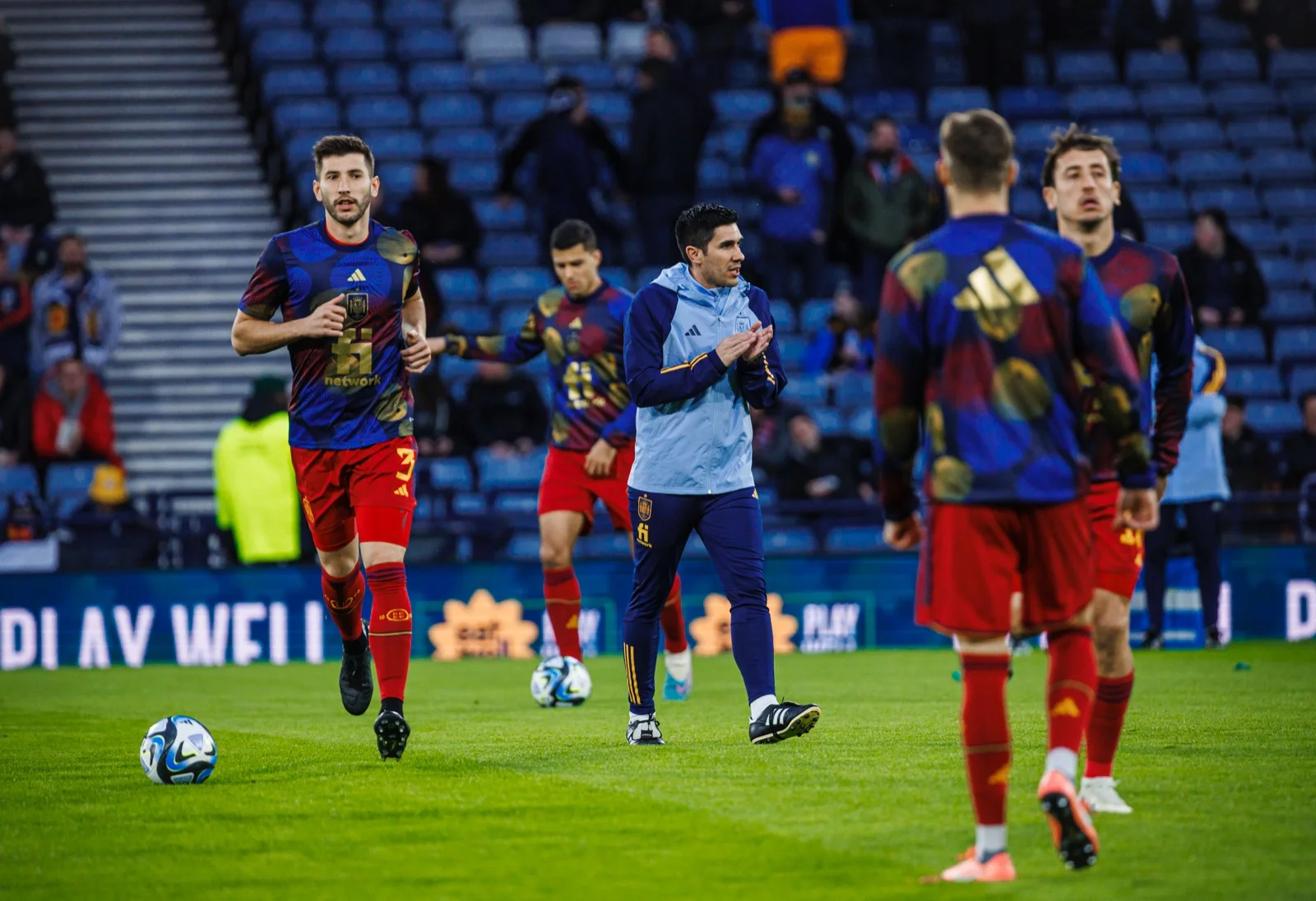 На 20-й хвилині Хоселу замкнув навіс Гайя ударом у голкіпера, а на 23-й він же опинився на замиканні кросу Порро – Шотландію врятувала поперечина! Ще за кілька хвилин Родрі переправив подачу з кутового в дальню дев'ятку, але м'яч торкнувся сітки лишень з верхнього боку. На 29-й же хвилині потужний постріл Порро з дистанції парирував Ганн.