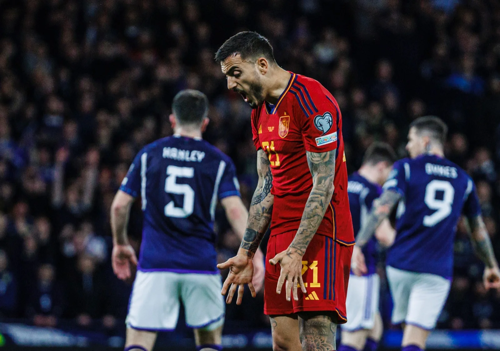 Збірні Шотландії та Іспанії у першому турі відбору на Євро-2024 здобули впевнені перемоги. "Тартанова армія" з дублем Мактоміная та двома асистами Робертсона розгромила Кіпр, а "Фурія Роха" завдяки дублю 32-річного дебютанта Хоселу дотиснула Норвегію. Їхні конкуренти втратили очки у другому турі, тож особиста зустріч острів'ян з піренейцями на Хемпден Парк приймала характер битви за перше місце.