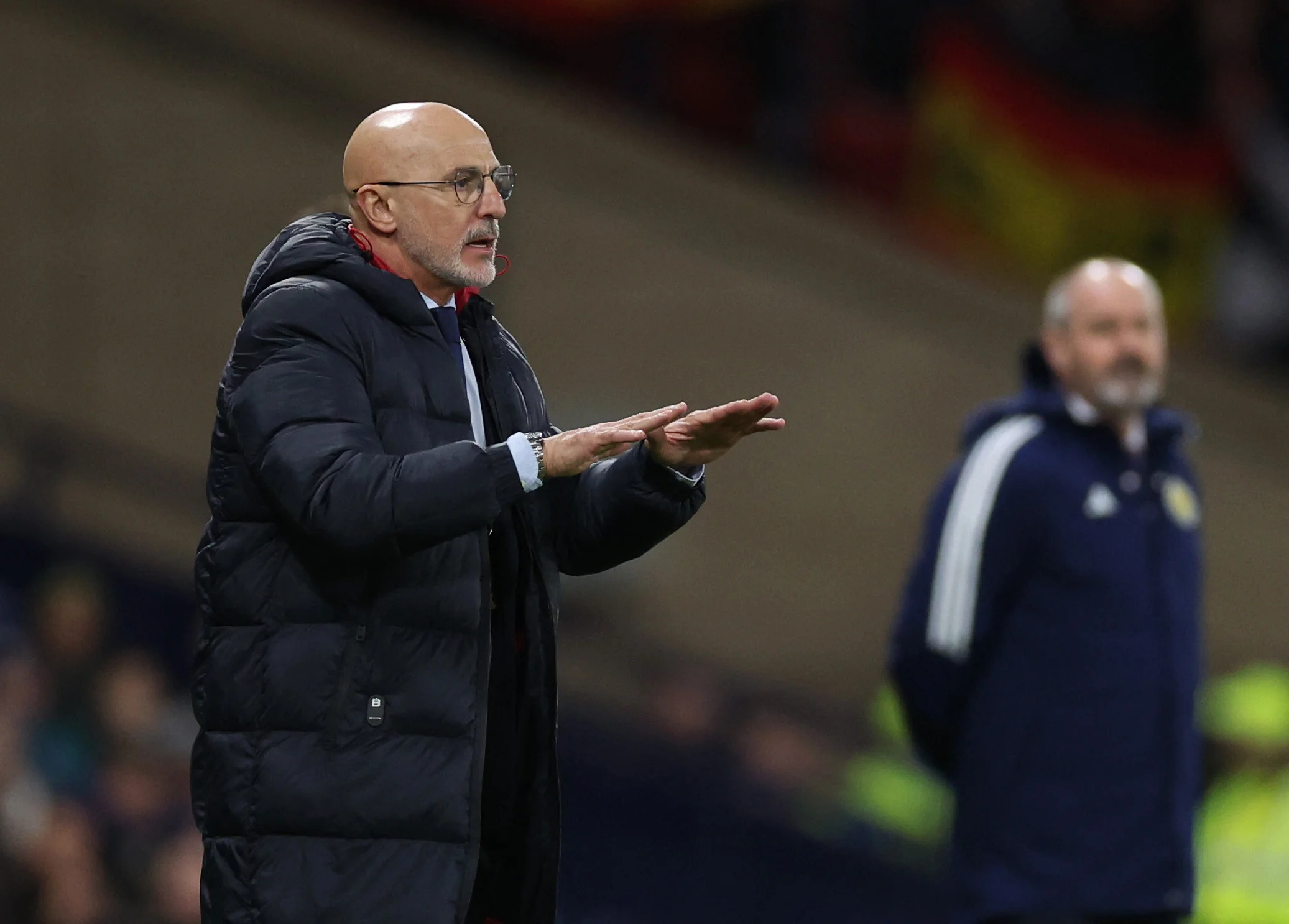 Стів Кларк вніс невеличкі зміни у склад, наситивши опорну зону й поставивши у старт Мактоміная. Луїс де ла Фуенте, своєю чергою провів масштабну ротацію – у порівнянні з матчем у Малазі в основі залишились три прізвища (Кепа, Родрі й Меріно). Хоселу вийшов з перших хвилин, а от гравців Барси взагалі проігнорували.