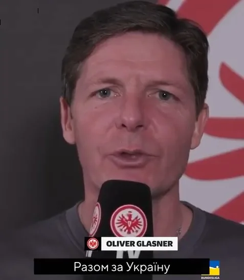 Наступна згадка про Олівера Гласнера в контексті України датована березнем минулого року і пов’язана з трагічними подіями. Футболісти та тренери Бундесліги записали звернення, у якому підтримали нашу країну у війні з Росією. Серед спікерів був і Гласнер.