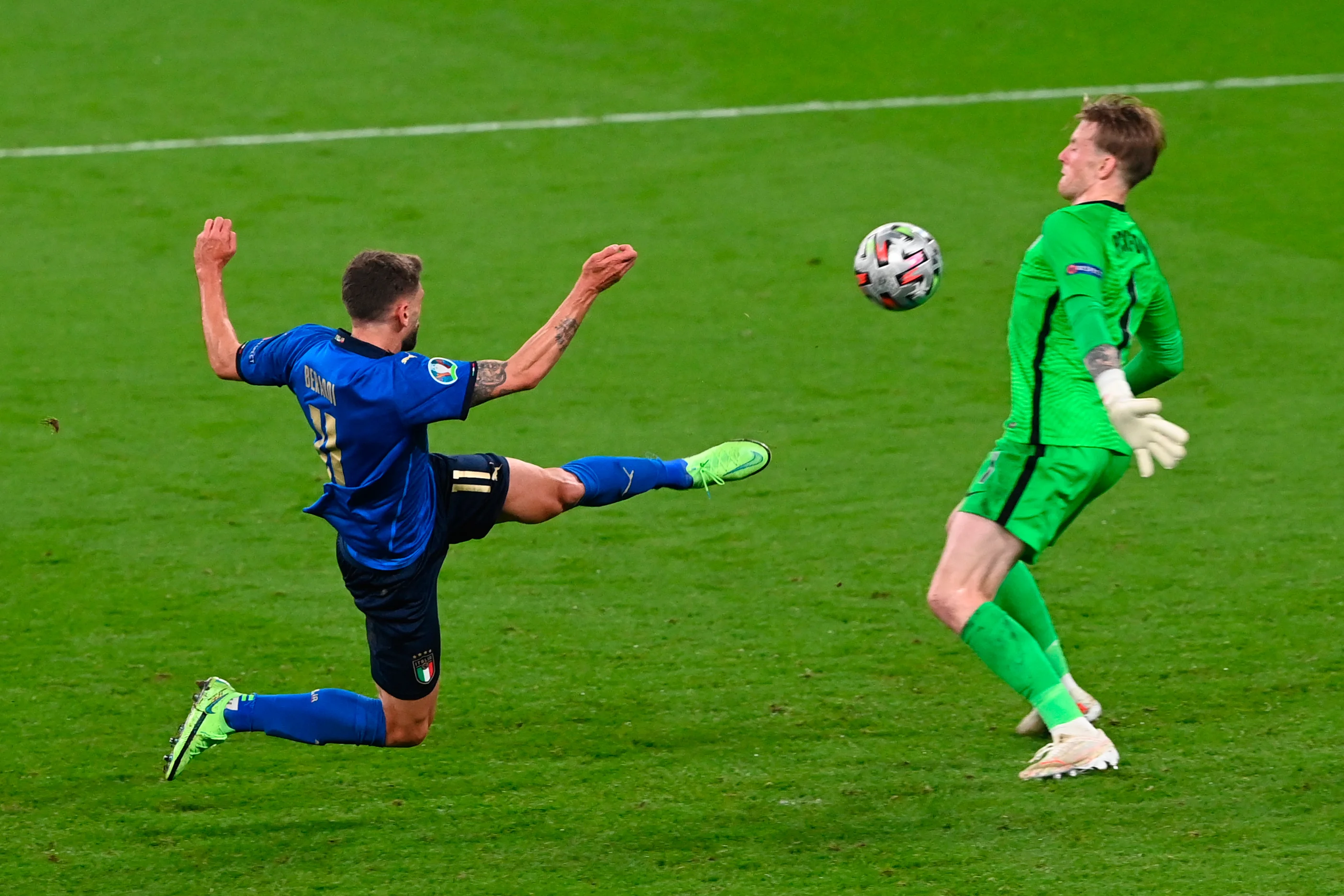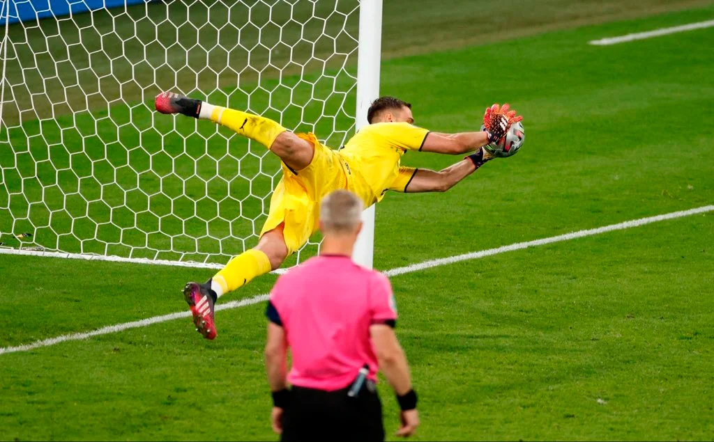 Жоржінью залишалося завдати вирішальний удар і піти святкувати, однак Пікфорд перевів його удар у стійку! Сака міг зрівнювати рахунок, але Доннарумма був проти. Джіджі парирував постріл Букайо, зробивши Італію чемпіоном Європи!